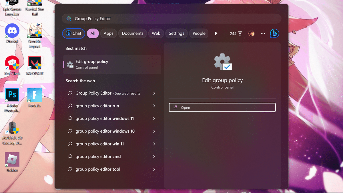 - OtwarteStart> WyszukajEdytor zasad grupy> kliknijOtwarteprzycisk.