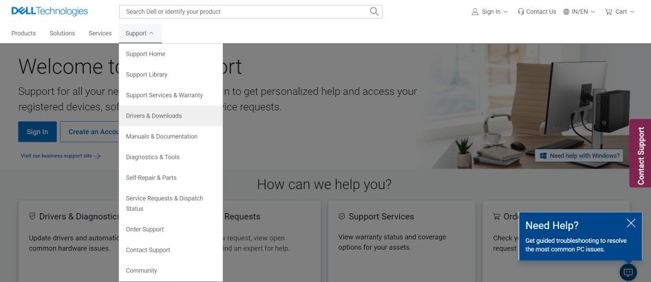 Krok 2: Kliknij „Wsparcie” i wybierz z menu „Sterowniki i pliki do pobrania”.