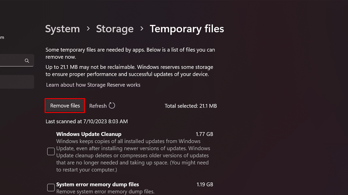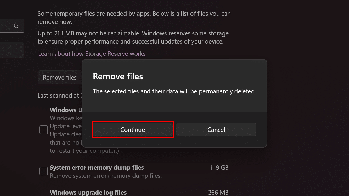 - Wybierz opcję „pamięć podręczna” i kliknij plikUsuwaćprzycisk.