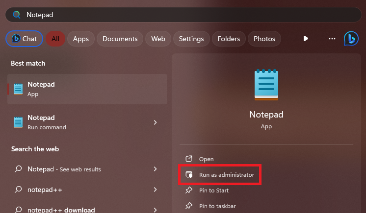 Pierwszym i najprostszym sposobem edycji pliku hosts jest użycie Notatnika. Większość użytkowników systemu Windows zna już Notatnik, więc użycie go do wprowadzenia zmian w pliku hosts nie będzie takie trudne. Oto jak edytować plik hosts za pomocą aplikacji Notatnik w systemie Windows 11: