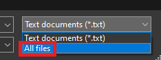 4.W prawym dolnym rogu zmień typ pliku naWszystkie pliki.