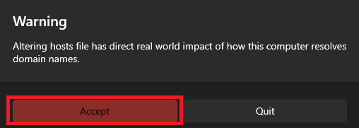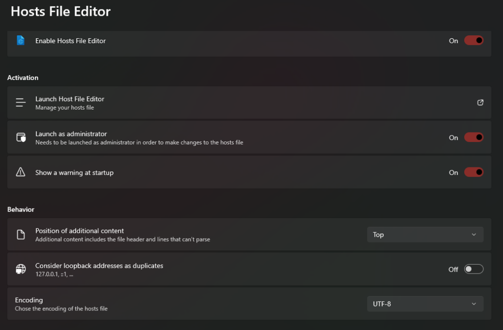 Najlepszą częścią PowerToys jest to, że umożliwia edycję pliku hosts w graficznym interfejsie użytkownika, co może uratować życie użytkownikom, którzy nie czują się komfortowo korzystając z edytora tekstu. Wykonaj poniższe kroki, aby edytować plik hosts w systemie Windows 11 za pomocą aplikacji Microsoft PowerToys: