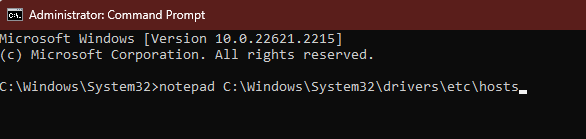 notepad C:WindowsSystem32driversetchosts