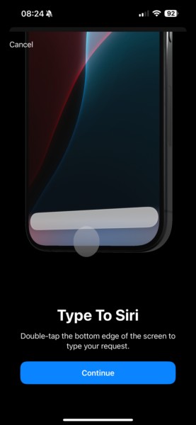 Tak więc, po zainstalowaniu Apple Intelligence na swoim iPhonie, pierwszą rzeczą, którą zauważysz w Siri 2.0, będzie tozupełnie nowa animacja, która pozbywa się kuli Sirii zastępuje gootaczającą poświatę wokół krawędzi ramek. Będziesz także mógł po prostudotknij dwukrotnie dolnej krawędzi ekranu, aby wywołać interfejs Type to Sirigdy nie chcesz rozmawiać z osobistym asystentem.