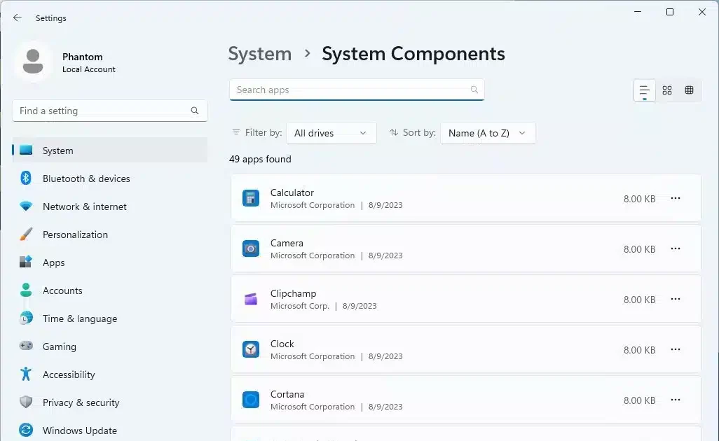 Nowa strona Składniki systemu w Ustawieniach w systemie Windows 11 to ukryta funkcja wprowadzona po raz pierwszy w wersji zapoznawczej 25926. Zapewnia centralną lokalizację do zarządzania wszystkimi składnikami systemu zainstalowanymi na komputerze, w tym domyślnymi aplikacjami, rozszerzeniami i kodekami.
