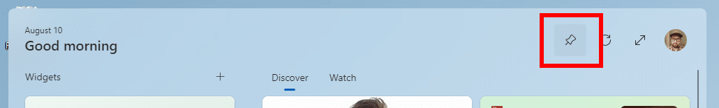 - Po zakończeniu następnym razem, gdy otworzysz tablicę widżetów, znajdziesz nowy „Szpilka” w prawym górnym rogu. Po kliknięciu przycisku „Szpilka”, tablica pozostanie otwarta nawet po przełączeniu się do innej aplikacji.