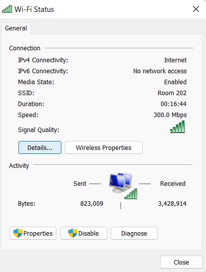 Będziesz mógł zobaczyć szczegóły DNS IPv4 i IPv6 dla tego połączenia sieciowego.