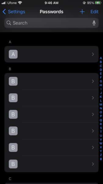 - Aby dodać nowe dane do logowania do listy. Kliknij (+) i dodaj kolejne szczegóły. Możesz także dotknąćRedagowaćprzycisk, jeśli chcesz usunąć którekolwiek z zapisanych haseł.