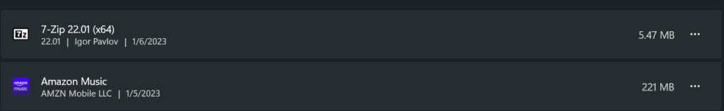 2.Następnie wyszukaj7-Zipaplikacja wAplikacjesekcję i kliknij trzy kropki obok nazwy aplikacji.
