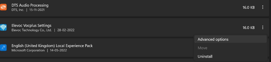 3.Następnie kliknij trzy kropki obok aplikacji i wybierzZaawansowane opcjez menu, aby otworzyć opcje zaawansowane.