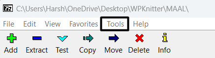 1.Aby rozpocząć, uruchom7-Zipaplikację na komputerze z systemem Windows 11 i wybierz opcjęNarzędziaopcję z górnego menu.