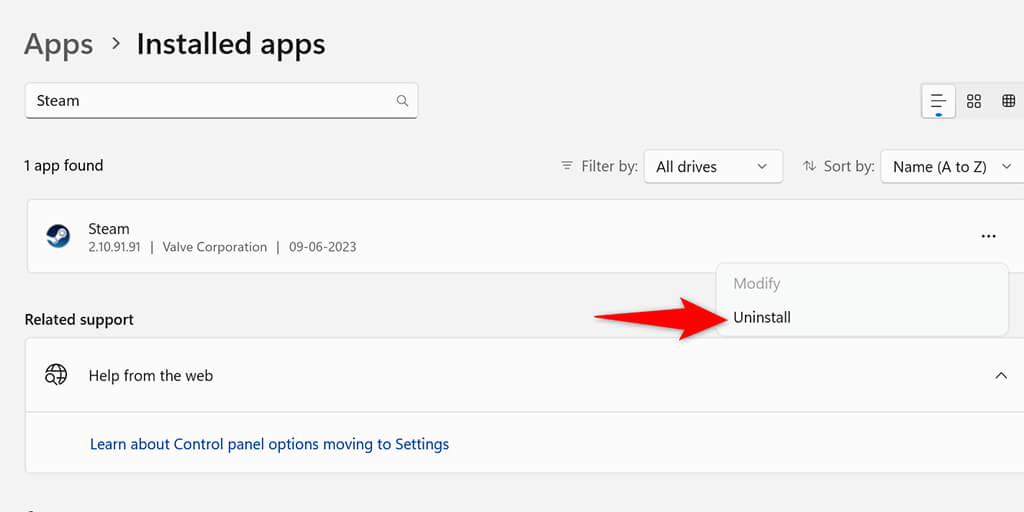 Jeśli nic innego nie pomoże, w ostateczności usuniesz i ponownie zainstalujesz Steam na swoim komputerze. Spowoduje to usunięcie wszystkich plików aplikacji i naprawienie wszelkich problemów spowodowanych wadliwymi plikami aplikacji. Pamiętaj, że po odinstalowaniu Steam tracisz pobrane gry. Możesz zachować swoje gry, kopiując pliksteamappsfolder z katalogu Steam do innej lokalizacji na komputerze.