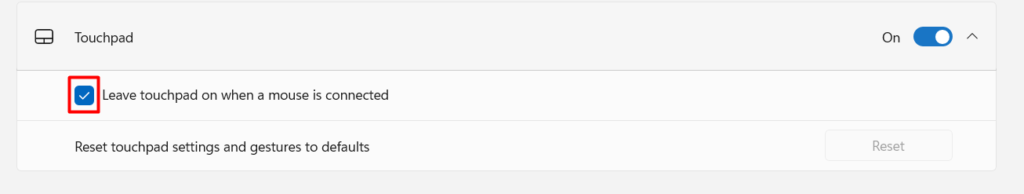 3.Na następnym ekranie upewnij się, żeTouchpadprzełącznik jest włączony, a następnie rozwiń sekcję.