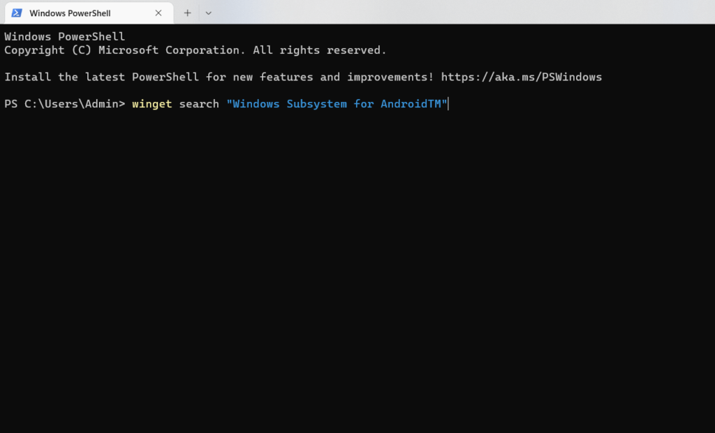 wyszukiwanie wingetem „Podsystem Windows dla AndroidTM”