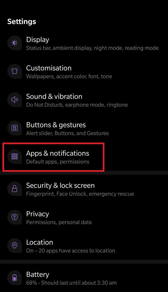 Krok 1:OtwarteUstawieniaswojego smartfona z Androidem i kliknijAplikacje, Aplikacje i powiadomienia lub Aplikacjeopcja.