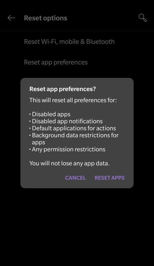 Problemy z jasnością adaptacyjną mogą pojawić się, jeśli niedawno zmieniłeś uprawnienia jakichkolwiek aplikacji lub wyłączyłeś aplikacje systemowe. Możesz spróbować zresetować opcje aplikacji w telefonie, aby zacząć od nowa i rozwiązać potencjalne problemy.