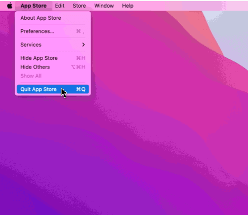 Jeśli nie ma problemów z połączeniem internetowym, a sklep Mac App Store nadal nie działa lub nie ładuje się, możesz spróbować wymusić zamknięcie sklepu Mac App Store. W tym celu kliknij prawym przyciskiem myszy ikonę App Store i wybierzZamknij App Store.