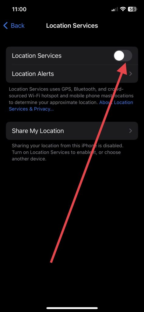 3.Przełącz przełącznik naUsługi lokalizacyjne.