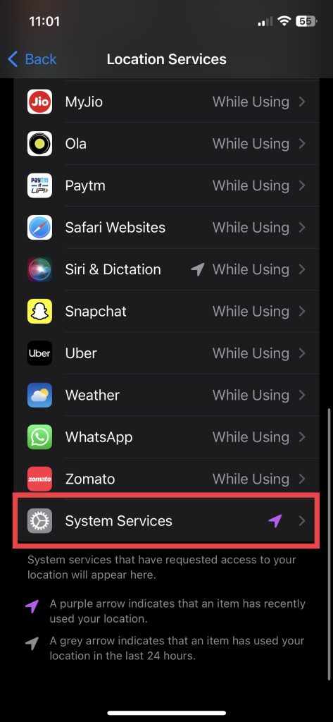 4.Ponadto przewiń w dół do końca ekranu i odwiedźUsługi systemowe.