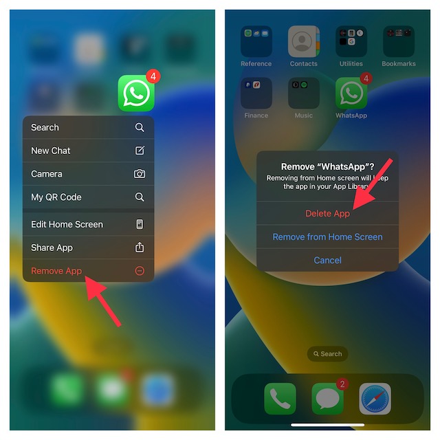 - Po prostu dotknij i przytrzymaj aplikację -> Usuń aplikację -> Usuń aplikację i potwierdź.