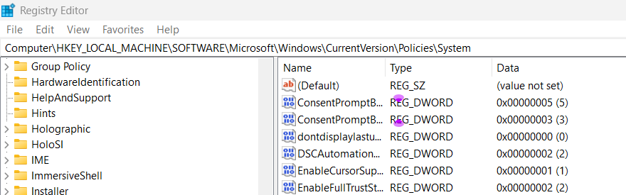 HKEY_LOCAL_MACHINESOFTWAREMicrosoftWindowsCurrentVersionPoliciesSystem