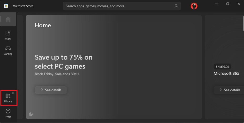 2.wSklep Microsoftuoknie, kliknij przyciskBibliotekaopcję w lewym dolnym rogu.