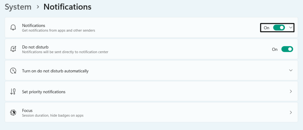 Jeśli na Twoim komputerze są włączone powiadomienia, może to być przyczyną tego problemu. Dzieje się tak, ponieważ powiadomienia uniemożliwiają automatyczne ukrywanie paska zadań poprzez ciągłe pojawianie się. Dlatego pojawia się problem z automatycznym ukrywaniem paska zadań, który nie działa. Więc,wyłącz powiadomieniana chwilę. Aby wyłączyć alerty na swoim komputerze, wykonaj na nim poniższe kroki: