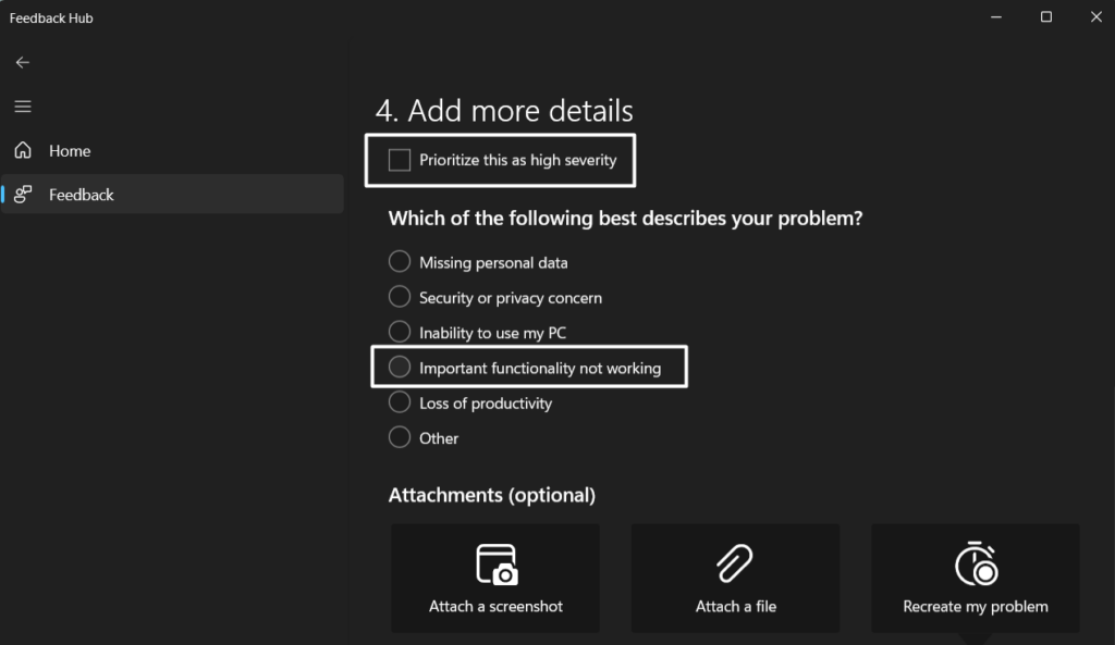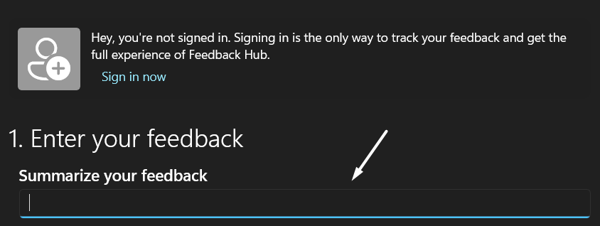 Jeśli problem nie ustąpi nawet po wypróbowaniu wszystkich rozwiązań opisanych w tym przewodniku rozwiązywania problemów,zgłoś problem w Centrum opiniiaby programiści mogli się temu przyjrzeć i rozwiązać. Zgłoszenie problemu w Centrum opinii jest dość łatwe. Poniższe kroki wyjaśniają to samo: