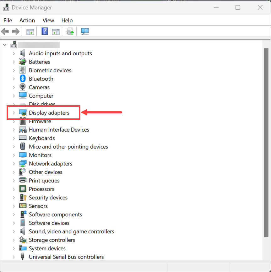 1.OtwarteMenedżer urządzeńna komputerze i rozwińAdaptery wyświetlaczaw nim, klikając strzałkę obok niego.
