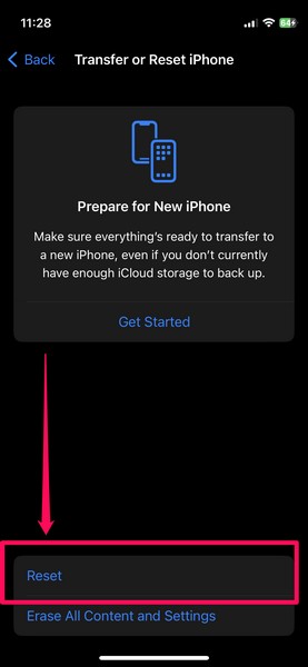 3.Przewiń w dół, aby znaleźćPrzenieś i zresetuj iPhone'aopcję i dotknij jej, aby otworzyć.