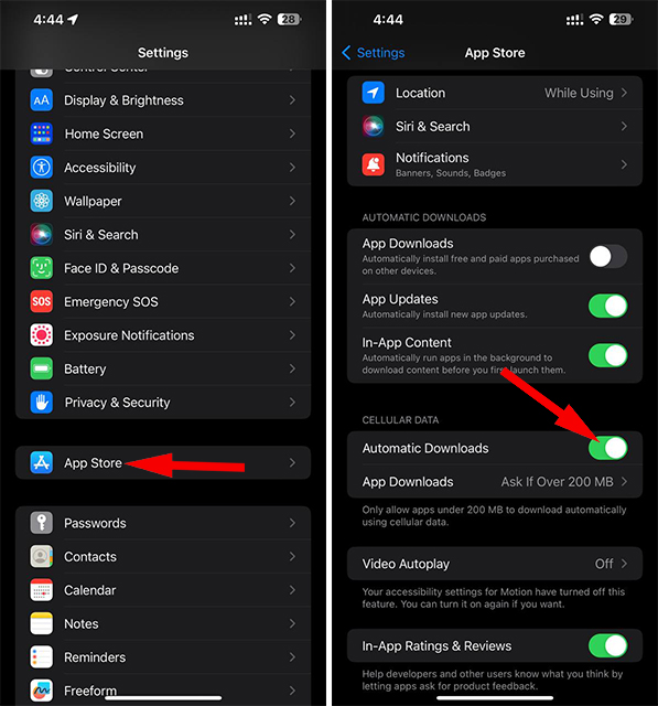 iOS może automatycznie pobierać i aktualizować aplikacje na różnych urządzeniach korzystających z tego samego Apple ID, zapewniając płynną obsługę. Chociaż jest to przydatne, wyłączenie tych funkcji może wydłużyć żywotność baterii iPhone'a.