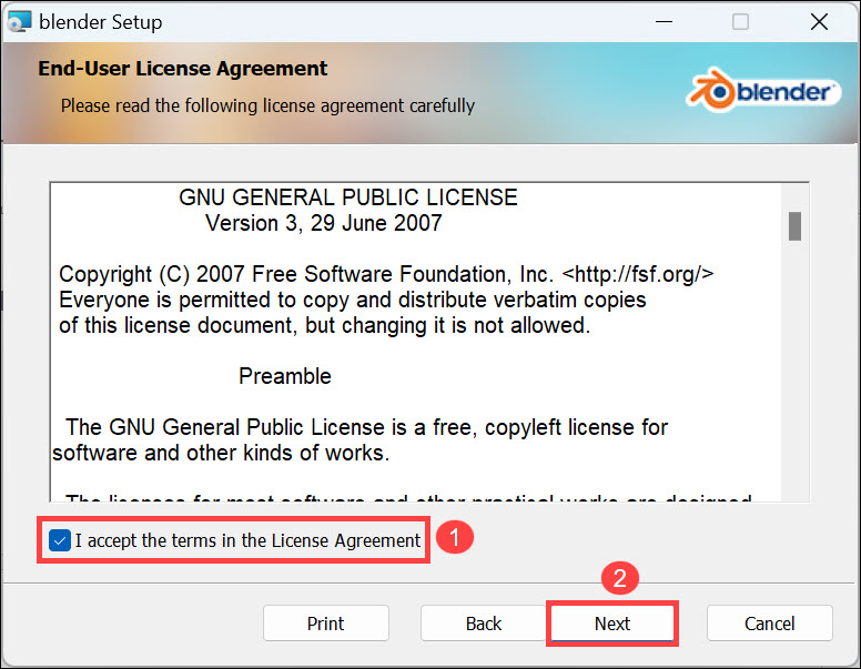 5.Postępuj zgodnie z instrukcjami wyświetlanymi na ekranie, dostarczonymi przez instalatora, aby zainstalować najnowszą wersję Blendera w swoim systemie.