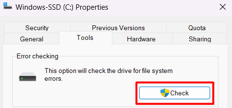 4.Teraz udaj się doNarzędziasekcję i kliknijSprawdzaćpodSprawdzanie błędówsekcja.