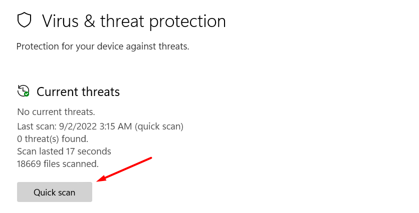 Najpierw należy wykonać skanowanie w poszukiwaniu wirusów i złośliwego oprogramowania za pomocą wbudowanego narzędzia do ochrony przed wirusami i zagrożeniami. Po zakończeniu możesz spróbować zaktualizować wszystkie sterowniki sprzętu, aby sprawdzić, czy to rozwiąże problem.