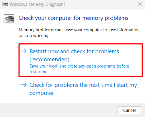 1.OtwórzNarzędzie diagnostyczne pamięci systemu Windows.