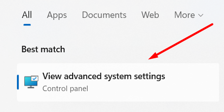 1.Aby to zrobić, otwórz plikPasek wyszukiwania systemu Windows, typWyświetl zaawansowane ustawienia systemui naciśnijWchodzićklawisz.