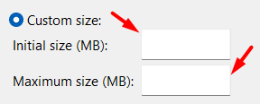 5.Teraz wprowadź ilość pamięci w plikuRozmiar początkowyIMaksymalny rozmiarpola tekstowe.