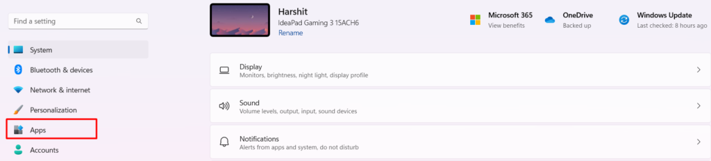 2.Następnie kliknijZainstalowane aplikacjei wyszukaj aplikację, którą chcesz usunąć z systemu.