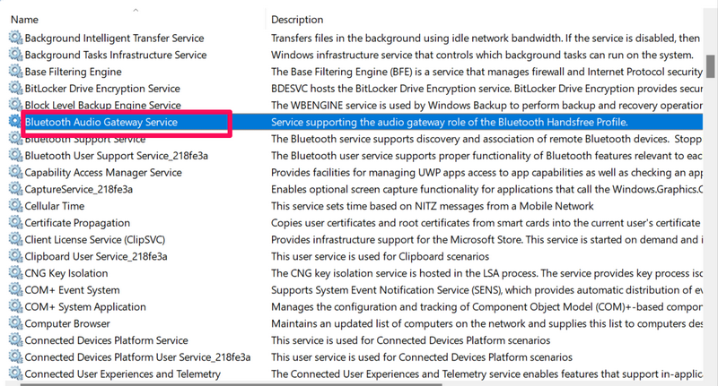 Jeśli aktualizacja i ponowna instalacja niezbędnych sterowników nie rozwiązała problemu niedziałających słuchawek Bluetooth na komputerze lub laptopie z systemem Windows 11, istnieje prawdopodobieństwo, że wystąpił problem z usługami Bluetooth na Twoim urządzeniu.