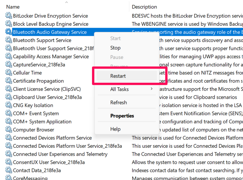 15. Uruchom ponownie usługi Bluetooth w systemie Windows 11