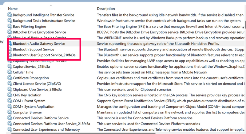 W takim przypadku możesz spróbować ponownie uruchomić usługi Bluetooth na swoim urządzeniu, aby spróbować rozwiązać problem. Aby to zrobić, wykonaj poniższe czynności:
