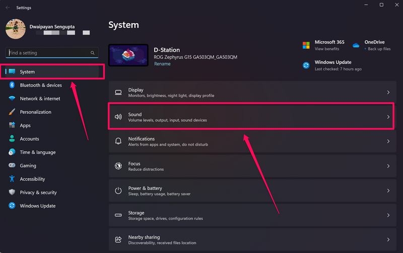 2.PodSystemna lewym pasku nawigacyjnym przejdź do zakładkiDźwiękopcję w prawym panelu.