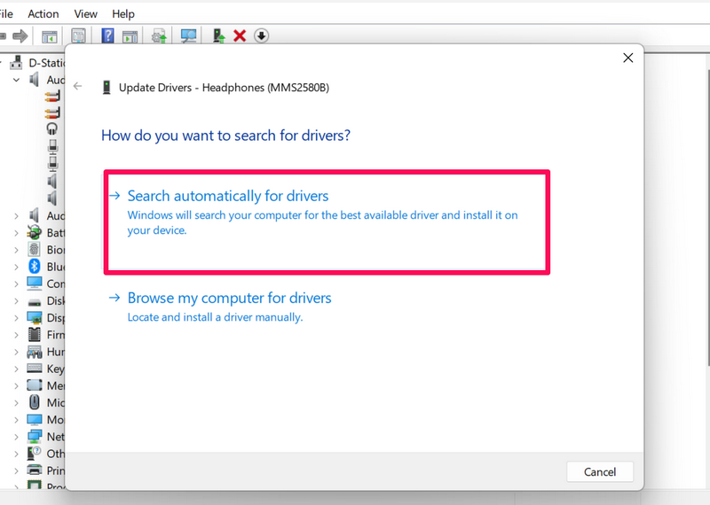 4.WybierzWyszukaj automatycznie sterownikiopcję w następnym monicie.
