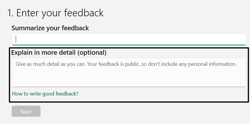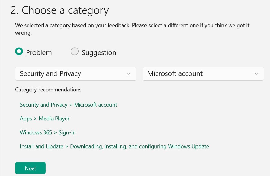 Załóżmy, że żadne z wymienionych rozwiązań nie pomoże rozwiązać problemu z niedziałającą regulacją głośności Bluetooth na komputerze z systemem Windows 11. W tym przypadku sugerujemy Cizgłoś ten konkretny problem firmie Microsoft. Miejmy nadzieję, że Microsoft to zrobi Przyjrzyj się temu problemowi i pracuj nad jego rozwiązaniem. Możesz wykonać poniższe kroki, aby dowiedzieć się, jak zgłosić to firmie Microsoft: