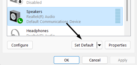 5.WybierzUstaw domyślnez menu kontekstowego, aby ustawić je jako domyślne urządzenie audio.