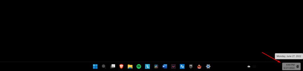 1.Na pasku zadań komputera z systemem Windows 11 kliknij opcję Data i godzina w jej prawym rogu.