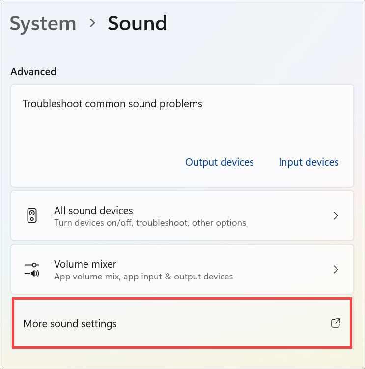 3.Na następnym ekranie, podZaawansowanysekcję, wybierzWięcej ustawień dźwiękuopcja.