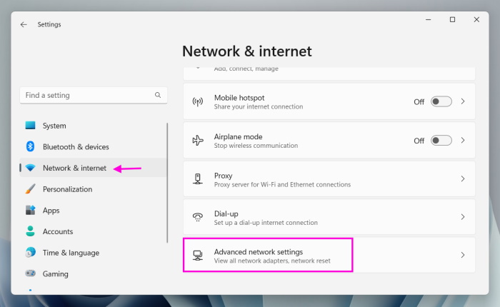 Może się zdarzyć, że ustawienia sieciowe Twojego komputera z systemem Windows 11 są źle skonfigurowane i dlatego pojawia się ta niedogodność. Dlatego, aby to zapewnić, sugerujemy Cizresetuj ustawienia sieciowe systemu Windows 11wykonując poniższe kroki: