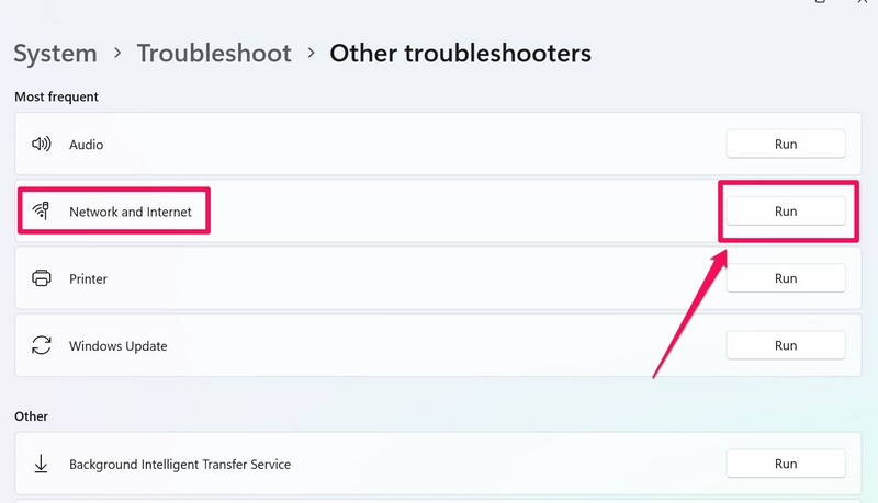 4.Kliknij naUruchomićprzycisk obok, aby uruchomićSieć i Internetnarzędzie do rozwiązywania problemów na komputerze.