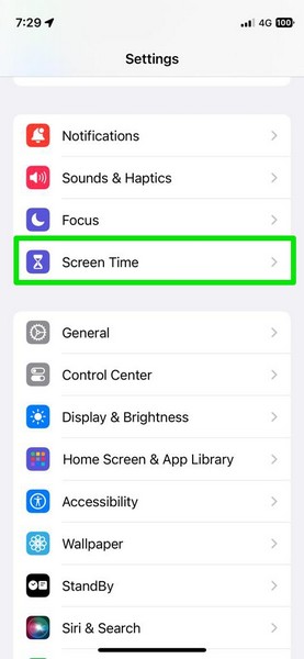 2.Idź doCzas ekranowystronę ustawień z listy.